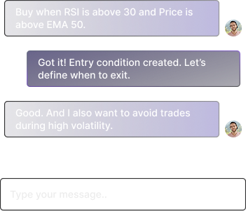 From entry and exit to risk filters, just describe it, the AI handles the syntax.