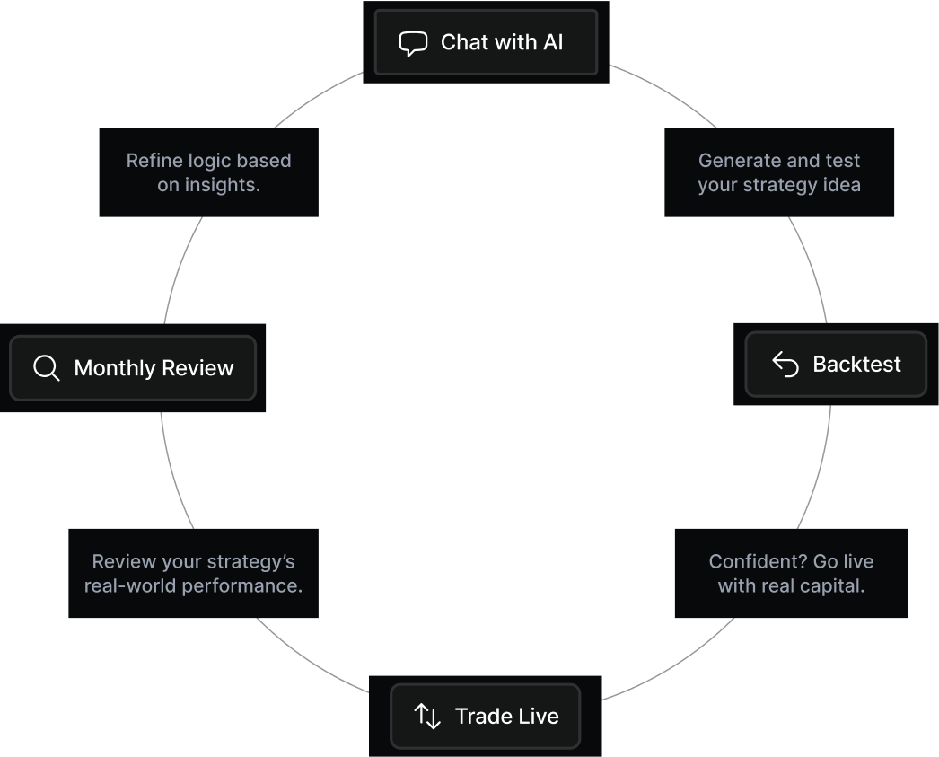 With built-in stop-loss logic, trade timing adjustments, and performance feedback, our AI removes bias and plugs gaps — so your edge stays sharp.